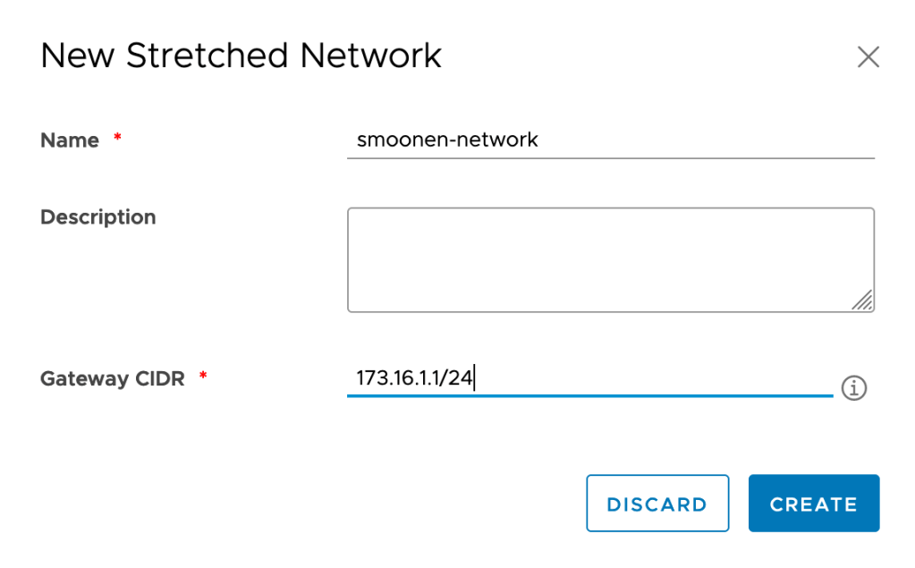 After creating the data center group, create a stretched network that will be shared by all three VDCs: