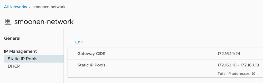 Next, navigate to each of your VDCs, view the stretched network, and create an IP pool for each VDC that is a subset of your stretched network: