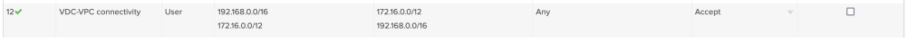 Finally, you must be sure to permit the VCD and VPC interconnectivity in both edge firewalls: