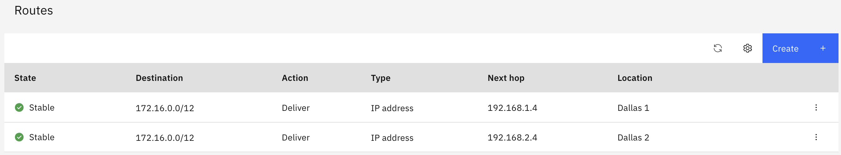 Finally, you need to visit the IBM Cloud console and find the route table configuration for your VPC: