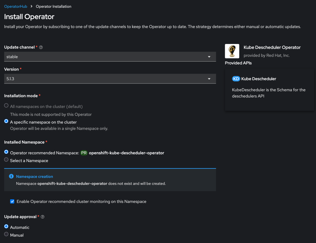 Then you need to create a KubeDescheduler resource describing your rescheduling plan: