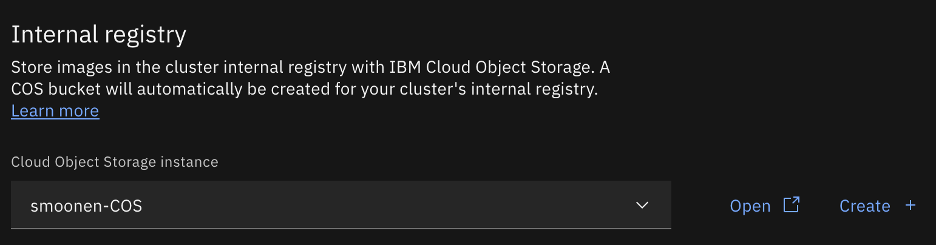 I chose to attach a Cloud Object Storage instance for image registry.