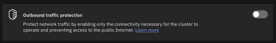 I thought at first that I would enable outbound traffic protection to learn how to make use of it. However, the OpenShift Virtualization operator documentation indicates that you should disable it.