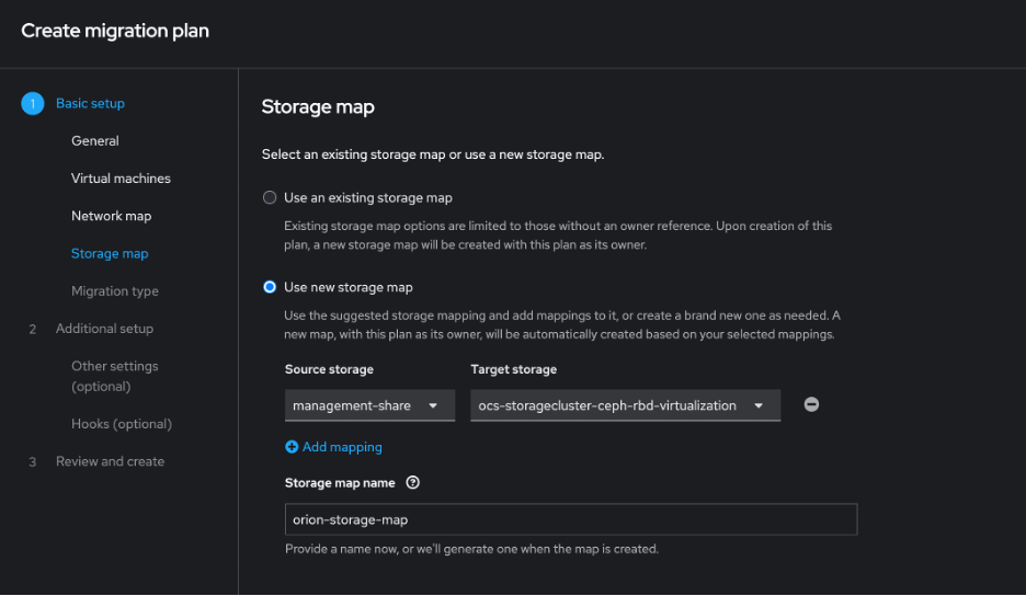 Then I created a network mapping. The only currently supported network mapping in IBM Cloud ROKS is the pod network.